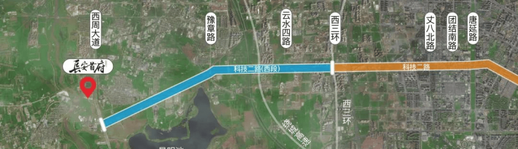 立体交通:目前科技二路市政道路、西咸新区智轨示范区1号线、16号线已全面贯通,沣东新城逐渐构筑四通八达、内畅外联的综合立体交通网;科技二路的贯通也将昆明池区域与高新无缝衔接,快速串联西三环、绕城高速,地铁 3 号线高速出行,畅达唐延路商务轴、锦业路等地