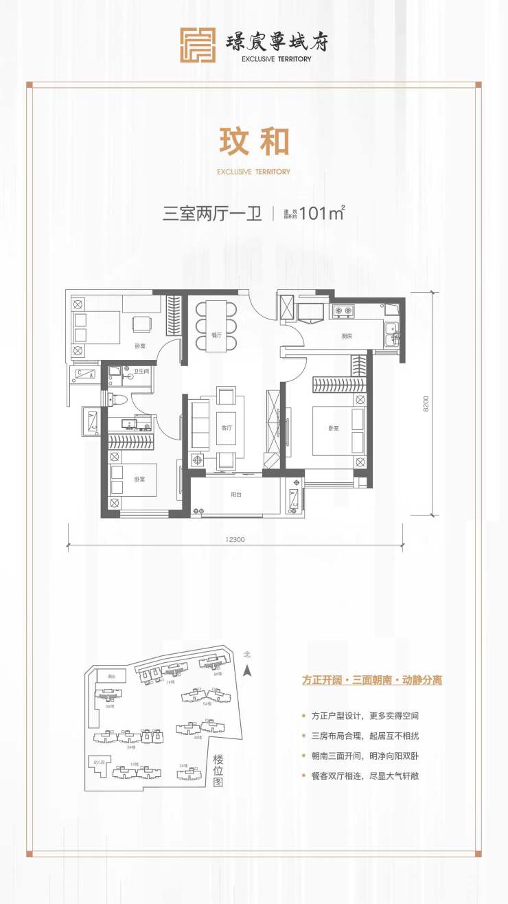 璟宸尊域府极致三居,让每一平米的定位和设计,都竭力贴合于居住者的习惯,纯板通透,动静分离,让居者享受优质户型的生活之便。