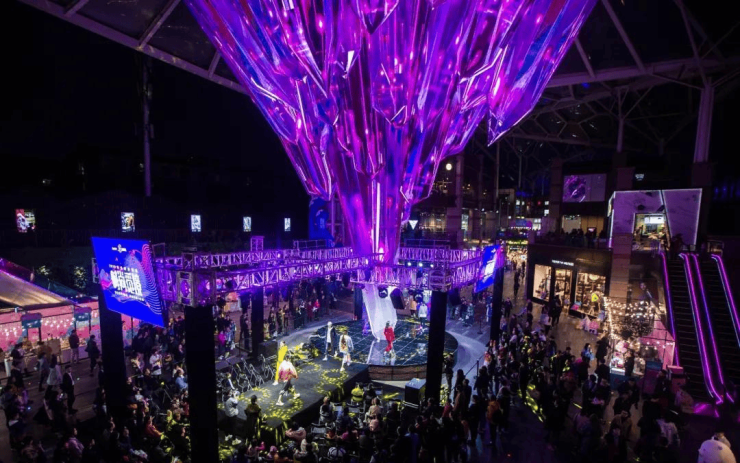 体验新:欢乐广场、水舞广场、水晶广场、悬浮天幕,街区式体验。