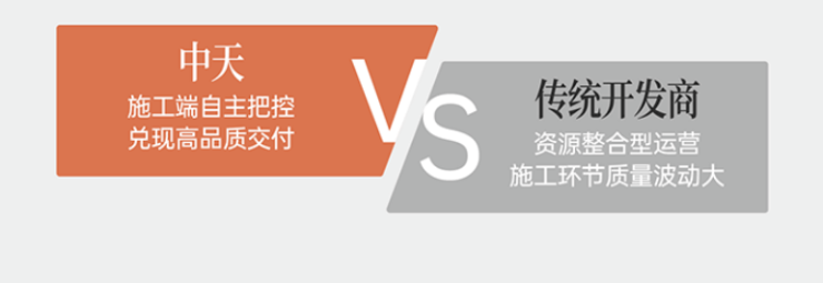 中天的开发模式是全产业链自营,拥有自己的甲级设计研究院、建材供应、施工建造、物业服务,彻底规避"设计与施工脱节、建材以次充好、交付延期”等行业痛点,如西安中天峯悦、中天宸悦项目均实现"提前交付+业主满意度超98%以上”