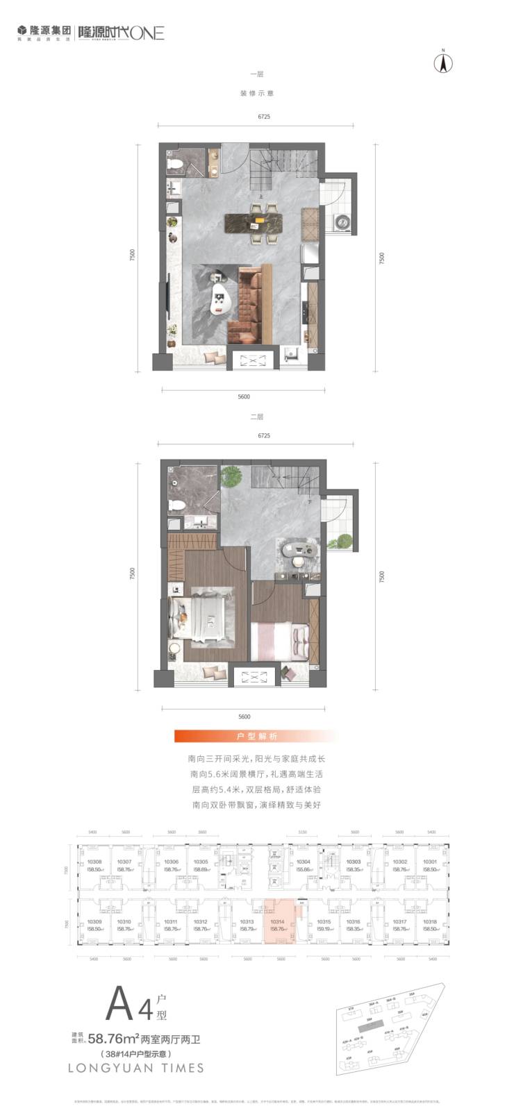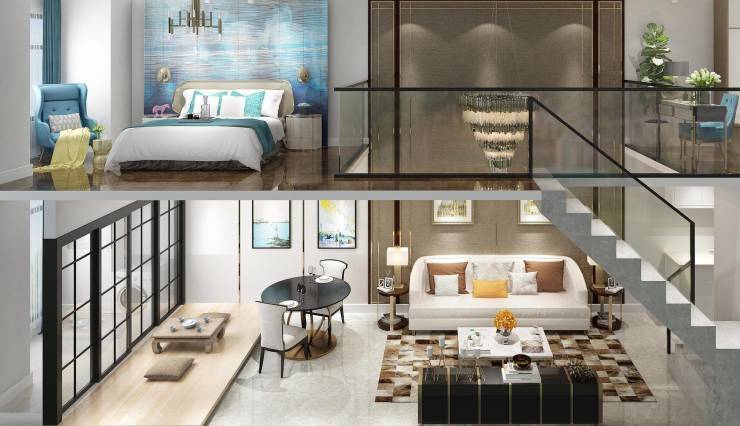 建筑面积约50-85㎡精奢著作,荣耀面世。层高约5.4米,打造双层生活,三室两厅两卫格局,满足一家人的阔朗生活,双气入户、动静分区合理,工作、生活、会客……多种生活形态融为一体,充分满足你所需要的style。