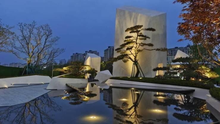 项目整体规划因地制宜,借助长安公园地块天然优势将建筑群落斜竖排布,依湖而建,营造四层低密大境