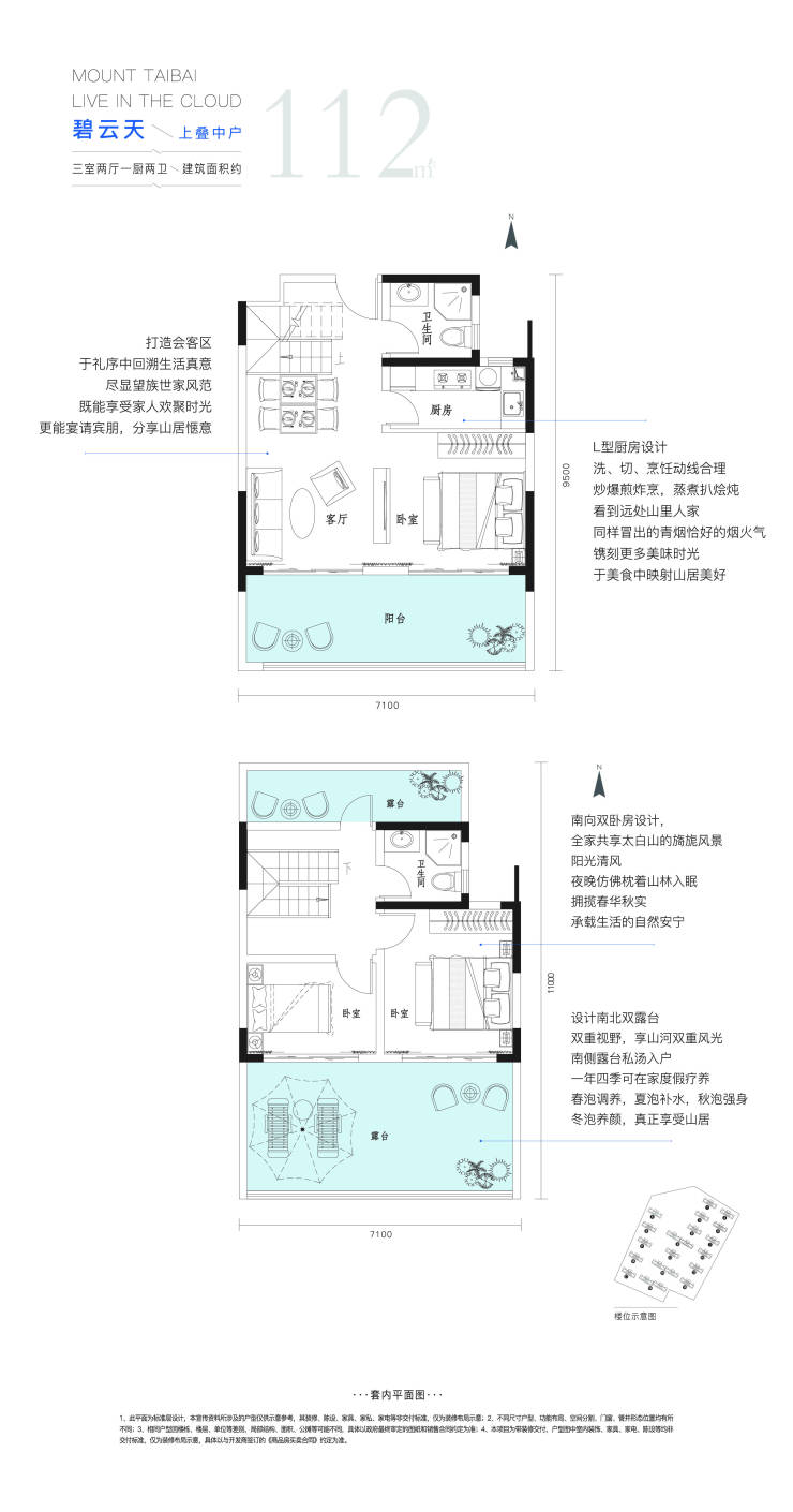 【碧云天】上叠中户 · 三室两厅一厨两卫 · 建筑面积约112㎡