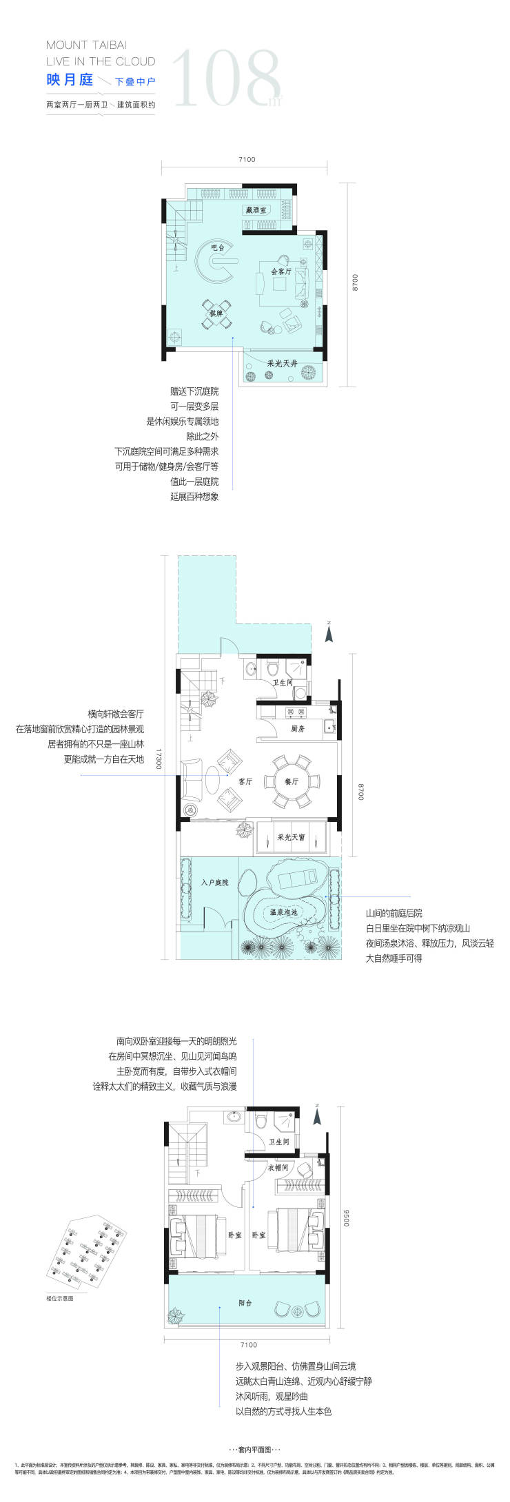 奢阔赠送:太白山同级别产品赠送庭院、地下室,底跃露台面积最大。50平米~220平米