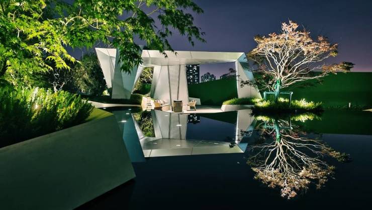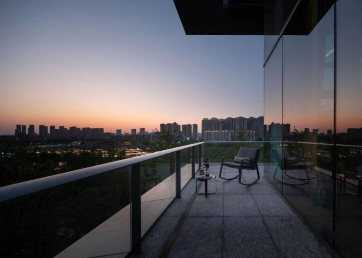 项目整体规划因地制宜,借助长安公园地块天然优势将建筑群落斜竖排布,依湖而建,营造四层低密大境