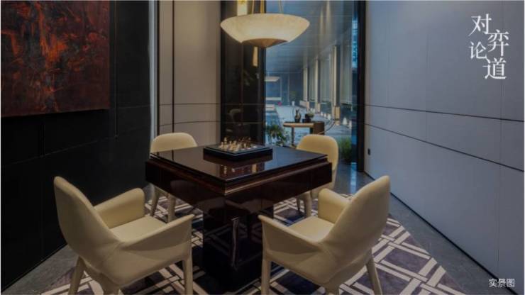 【棋牌室·对弈论道】通过精致吊灯与艺术画作点缀,营造优雅华丽的闲适氛围,演绎圈层志趣。