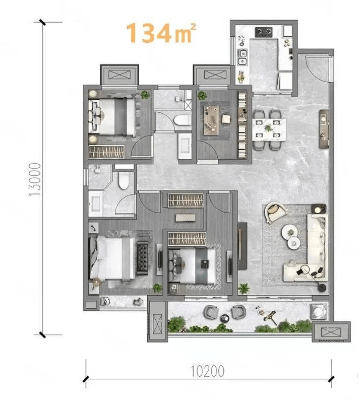 面积区间:建筑面积约68-143㎡高层、小高层