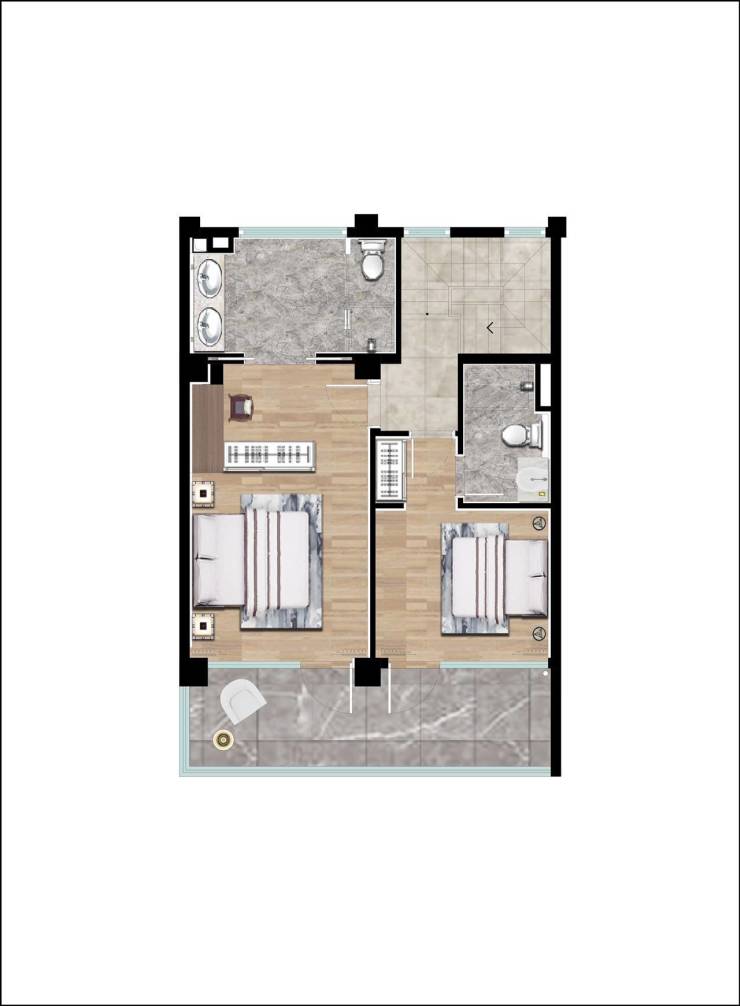 【7.3米挑空L 型转角露台】
