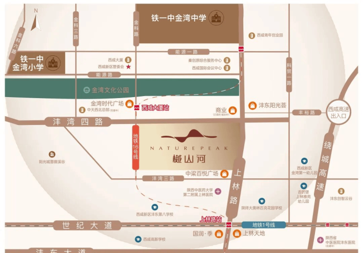 三园环伺:西咸中央公园+金湾文化公园(约212亩)、南沙滩公园(全龄段亲子戏水区)。