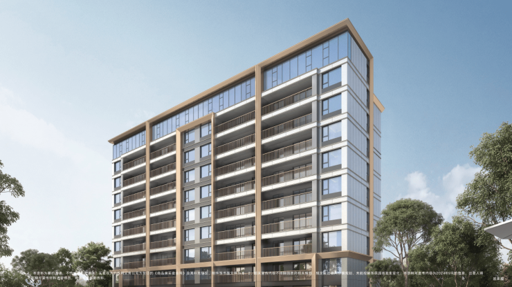 采用现代美学设计打造都会时尚建筑立面,以深灰色真石漆搭配铝板线条、玻璃,缔造精奢、精致的质感生活封面。
