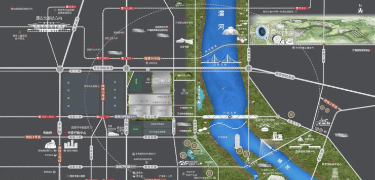 距离广运潭公园及灞河仅800米,西安浐灞国家湿地公园、世博园、广运潭公园、桃花潭公园、滋水公园5大公园萦绕,打造西安生态宜居区。