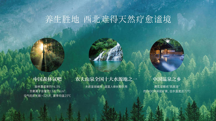 项目坐落于秦岭第一主峰太白山下,以约255亩匠心巨著,低容积率营造山水宜居之所。集汗血宝马俱乐部、雅宋博物馆、草坪营地、药膳中心、田园农庄、宋式合院、温泉康养等为一体打造西北隐逸康养胜境。