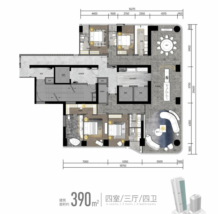 最大约1000平米整层组合