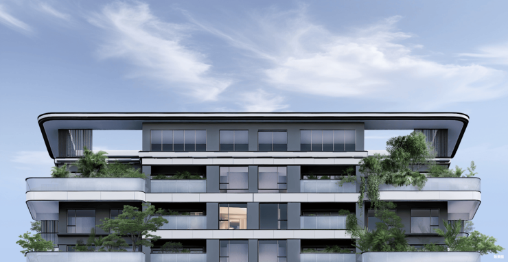 精心挑选铝板与全景落地玻璃幕墙相互搭配刚柔并济,佐以流线型曲面转角工艺细腻打磨每一处衔接。