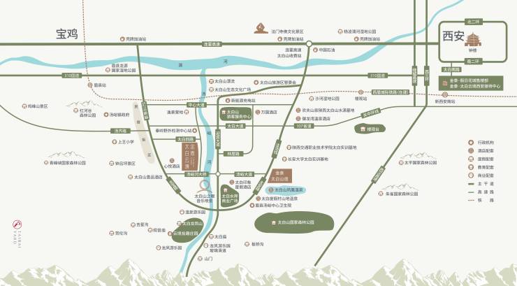 ④户眉高速(规划建设中):双向6车道,从西安高新、曲江及城南出发至太白山更方便,车程时间更短;