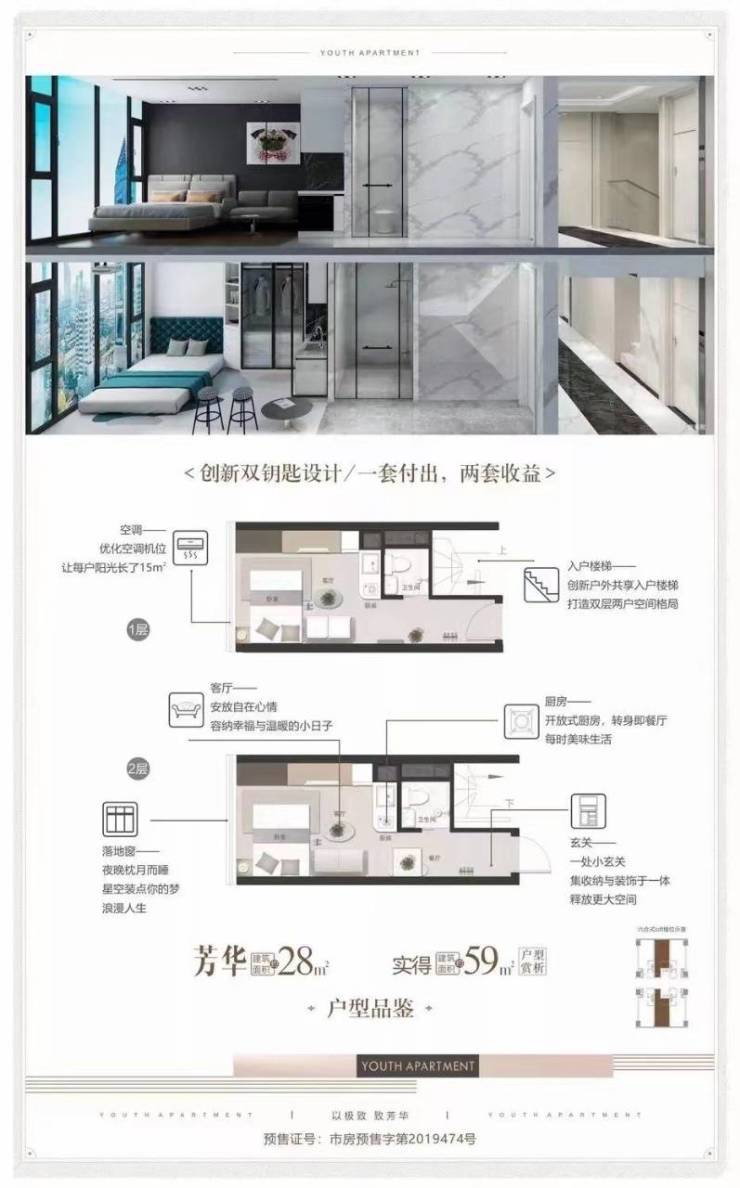① 以28㎡户型为例,首付35万,月供3876元/月,按照一套一室2000元/月的租赁价格来说,4000元/月的租金收益完全可以轻松实现以租养贷。