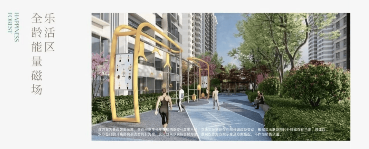 全龄健身区,健身器械+地面标识语+休闲坐凳等综合运动功