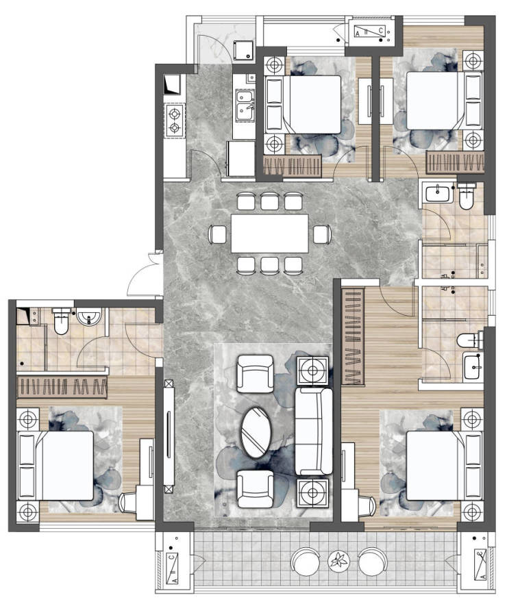 A户型 建面约188㎡ 四室两厅三卫