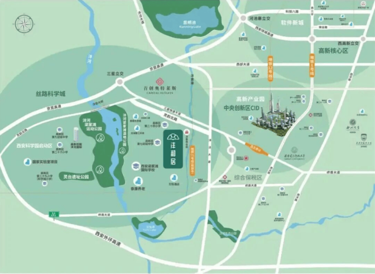 (销售中心)沣和居→高新名校 + 双三甲→丝路科学城核心→ 3000 亩湿地→一对一咨询