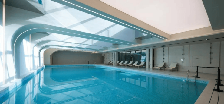 约1575㎡下沉式高定会所,室内设置四点半学堂、健身房、天幕泳池等多重空间