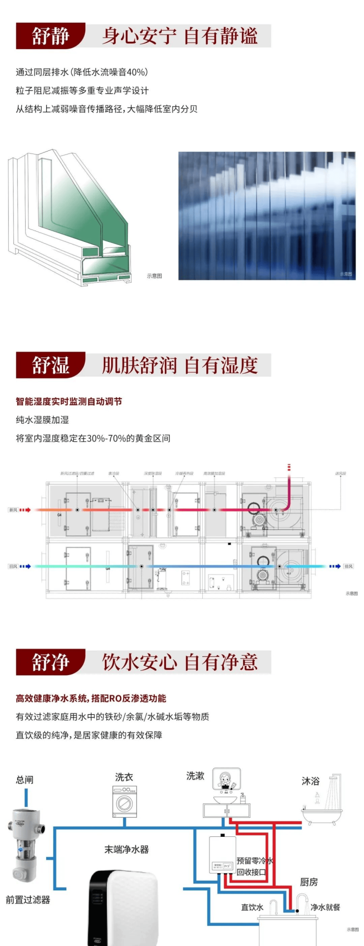 从2009年开创科技居住先例——广渠金茂府,到2018年发布绿色健康、智慧科技升级的"金茂2.0",中国金茂"臻绿品质",从"温度、湿度、空气、阳光、水、声音"六大基本生命元素延伸12大绿金智慧科技系统,实现"舒湿、舒温、舒氧、舒净、舒静"的五舒居住环境。