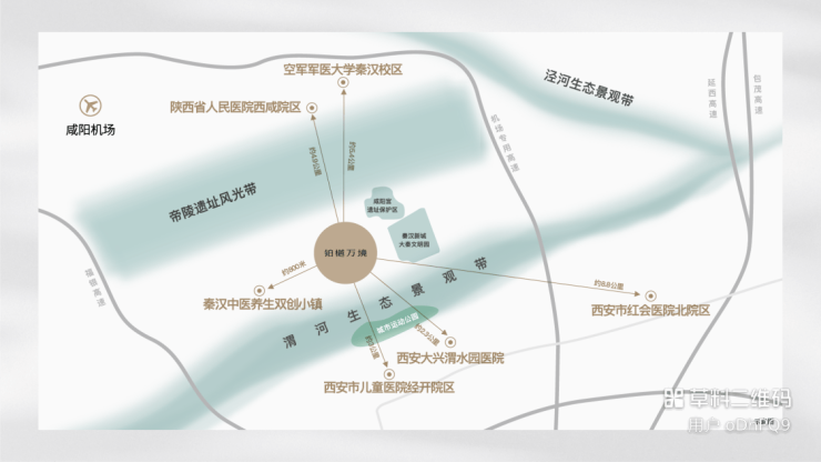 驾车半小时内直抵机场、西安北站;立体路网高效通行。